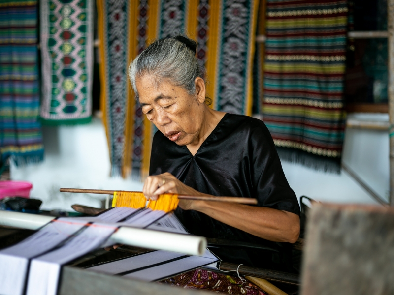 - La route se poursuit vers Sukarara, village de tisserandes renommé, où les femmes perpétuent l’art du tissage sur métier à bras. Vous assistez à une démonstration de leur travail délicat et découvrez les motifs typiques qui ornent les tenues traditionnelles de Lombok.
